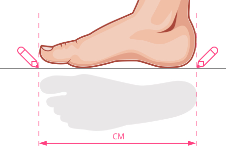 2. Определяем длину. Берем каждый контур и линейкой замеряем расстояние от пятки до кончика самого длинного пальца (это может быть большой или соседний с ним палец). Далее сравниваем два полученных значения, выбираем большее из них, а затем округляем с увеличением до 0,5 см. То есть 26,2 см превратятся в 26,5 см, а 26,7 в 27 см.